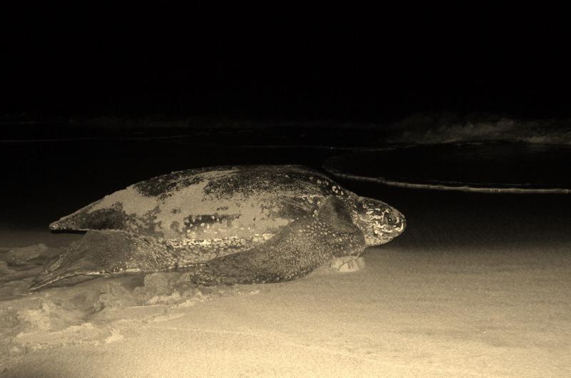 Hier kommen ab März jeden Jahres die großen Lederschildkröten zur Eiablage her, doch nur nachts kommen die riesigen Kolosse (ca. 2m und 500kg) an Land, buddeln ein ca. 1m tiefes Loch, legen dann 80- 100 tennisballgroße Eier hinein und schaufeln ihr Loch wieder zu. Dann verschwinden sie wieder im Meer und überlassen die Kleinen sich selbst. Diese schlüpfen ca. 6 Wochen später und buddeln sich, ebenfalls in der Nacht, an die Oberfläche. Auf dem Weg ins Meer sterben schon sehr viele, da sie keine Orientierung haben und auch wenn sie das Meer erreichen, haben die wenigsten eine Chance zum Überleben. Die gewaltigsten Schildkröten der Welt sind leider vom Aussterben bedroht...Deswegen sollte man sie während ihrer Eiablage niemals stören!
