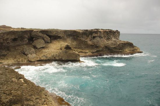 Wir erkunden zuerst den Norden der Insel und fahren zur "Animal Flower Cave", dies ist eine vom Meer geschaffene Felsenhöhle. Gegenüber den gemütlich dahin plätschernden Stränden an der Westseite, herrscht hier ein wildes Meeresklima. Hohe Wellen klatschen an die Felsen und ein frischer Wind bläst uns um die Ohren.
