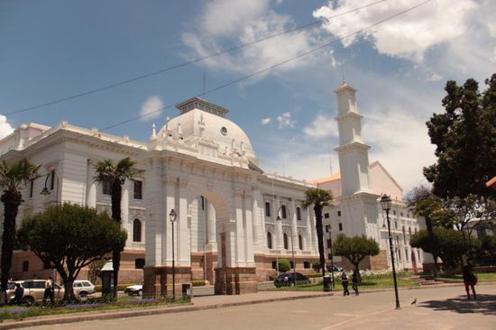 Sucre liegt auf rund 2800 m, hat ein sehr angenehmes, gemäßigtes Klima und vermittelt mit seinen reichen, gepflegten Plätzen, Parkanlagen und weißgetünchten Häusern ein wenig Urlaubsstimmung.