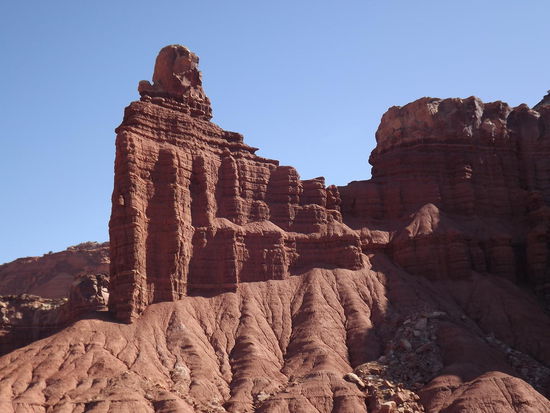 Da die Fahrt nach Moab ca 3,75 Stunden dauern soll, (also wohl eher 4,5 Std..) sind wir in Escalente bereits morgens um acht aufgebrochen. Unser Weg führte uns auf direktem Weg durch den Capitol Reef NP und wir konnten ein paar Abstechern zu Aussichtspunkten und kurzen Wanderungen nicht widerstehen... Die Gegend ist erstaunlicherweise sehr Abwechslungsreich (nicht nur rote Felsen und Klippen, sondern zwischendurch gibt es richtig grüne Oasen und auch wieder graue Mondlandschaften).
