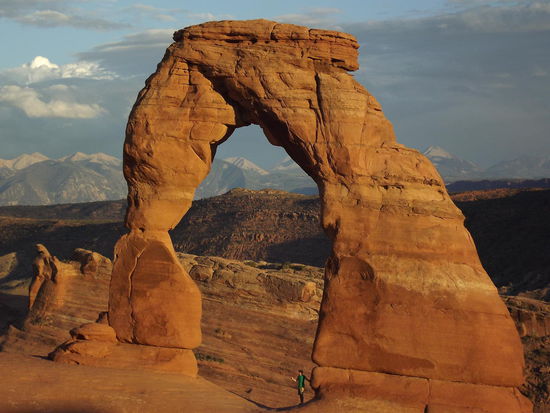 In unserem Motel angekommen, es ist das gleiche wie letztes mal, haben wir schnell die Koffer auf unser Zimmer gebracht und sind direkt wieder los. Wir wollten uns nochmal den Sonnenuntergang am Delicate Arch im Arches N. P. anschauen. Vorher ging es aber noch schnell zu Wendy's einen Burger essen. Da wir etwas früher im Nationalpark ankamen entschieden wir uns dafür den Delicate Arch noch schnell von einem Aussichtspunkt von unten an zu schauen. Danach haben wir auf dem, schon sehr vollen, Parkplatz vom Trailhead zum Delicate unsere Rucksäcke mit Wasser bestückt und haben uns auf die mindestens einstündige Wanderung (Aussage vom Ranger im Visitor-Center) gemacht. Nach 30 Minuten waren wir (ziemlich aus der Puste) schon an unserem Ziel! Sind wohl etwas schneller als der Rest gelaufen Jetzt hatten wir noch 2 Stunden Zeit bis zum Sonnenuntergang. Haben uns schnell einen guten Platz ausgesucht bevor es voll wurde und es uns gemütlich gemacht. Der Sonnenuntergang war super. Das Einzige was genervt hatte war, dass man kaum ein Foto ohne irgendwelche Deppen machen konnte die während des Sonnenuntergangs unter dem Arch standen und sich fotografieren ließen. Nicole musste mich zurück halten, dass ich nicht anfange mit Steinen zu werfen...