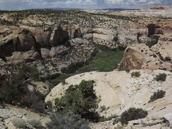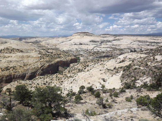 Escalente ist ein kleiner Ort (ca. 460 Einwohner), der auch an der Interstate 12 und mitten im Grand Staircase National Monument liegt. Die Gegend ist einfach atemberaubend! Das Grand Staicase Monument ist ein riesiges, felsiges und sehr wenig besiedeltes Gebiet. Es gibt hier Gesteinsformationen in allen erdenklichen Farben und Formen, wobei rot und sandfarben dominieren. Diese Felsen und Berge, welche wie gesagt sehr karg bewachsen sind, werden von vielen kleinen Schluchten, die durch Flüsse gegraben wurden, unterbrochen. Diese Creeks sind meist grüne Oasen, in denen die Vegetation nur so wuchert. Über die IS 12 Richtung Boulder (noch kleiner; ca. 250 Einwohner) gelangt man zu zahlreichen Ausgangspunkten für Wanderungen jeglicher Art (Creeks entlang, die Felsen hoch, zu Arches etc.).