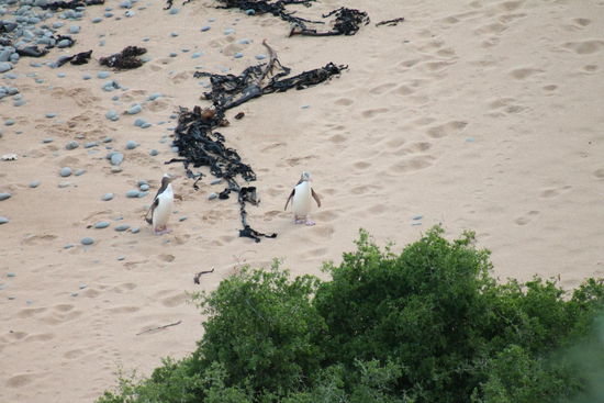 ....Wir hatten den Tipp bekommen, dass man in der Abenddämmerung in Oamaru Pinguine beobachten kann. Wir fuhren also einige Stunden vom Mount Cook nach Oamaru und kamen am späten Nachmittag in diesem schönen Städtchen, das nicht nur wegen der Pinguine, sondern auch wegen zahlreicher Kalksteingebäude bekannt ist, an. Nach dem wir uns in der Touristeninformation informiert hatten, wo wir am günstigsten schlafen können, hieß das Ziel für diesen Tag nur noch, Pinguine anschauen. Und das taten wir dann auch fleißig. Wir fuhren gegen 20Uhr zu dem uns empfohlenen Strand und sahen innerhalb einer guten Stunde circa 6-7 Pinguine aus dem Wasser kommen und machten unzählige Bilder mit der Kamera.