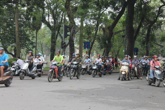 Mittwoch, 23.04.2014, haben wir relativ ruhig angehen lassen. Wir haben nach dem Frühstück im Hotel noch ein wenig im Zimmer relaxt und uns am Nachmittag auf den Weg in die Altstadt gemacht, um einfach das Treiben auf den Straßen mitzukriegen. Denn auf Hanois Straßen gibt es ungefähr 1,5 Millionen Motorroller, bei einer gesamten Einwohnerzahl von circa 6 Mio. Einwohnern, ein guter Schnitt. Und es ist schon ein Highlight als Fußgänger über die Straße zu gehen, weil Verkehrsregeln gibt es kaum.