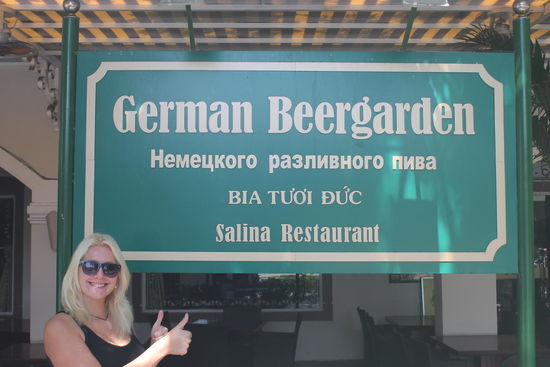 Noch ein weiteres schönes Erlebnis in Nha Trang war das Kennenlernen von dem deutschen Restaurantbesitzer Helmut und dessen vietnamesischer Frau Trang. Zur Erklärung...In Nha Trang gibt es ein Restaurant mit angeschlossenem Biergarten, in welchem man German Beer und Sausages bekommt. Wir verkehrten des Öfteren dort, weil die deutschen Speisen sehr authentisch sind. Und wir uns dort sehr wohl fühlten. Jedenfalls war uns von Beginn an klar, dass der Besitzer dieser Lokalität ein Deutscher sein musste. So haben wir dummerweise erst am letzten Tag unseres Aufenthaltes in Nha Trang, 11.05.2014, den Besitzer gefragt, wo er her sei. Nach dem dieser dann Auerbach im Vogtland sagte, war die Überraschung unsererseits groß. Natürlich verrieten wir Helmut sofort, dass wir auch aus dem Vogtland kommen und so war die Freude bei beiden Parteien riesig! Wir unterhielten uns sofort sehr angeregt und Helmut hat uns dann spontan zum Abendessen eingeladen. Da er an diesem Tag noch Freunde zum Essen erwartete. Wir sollten in jedem Fall einen sehr lustigen und informativen Abend verleben, bei dem uns Helmut seine Erfahrungen von vielen Jahren Vietnam schilderte. Zu den anderen geladenen Gästen gehörte unter anderem Duong, eine vietnamesische Frau in unserem Alter, mit der wir Tage später das Nachtleben von Saigon unsicher machen sollten. Aber dazu später mehr.