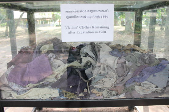 Wir hatten uns aber für den nächsten Tag, 19.05.2014, die Killing Fields, die sich ungefähr mit dem Tuktuk eine halbe Stunde außerhalb der Stadt befinden, vorgenommen. Und was man hier zu sehen bekommt, lässt einem mehr als Gänsehaut aufstehen! Die Killing Fields unter der Regierung von Pol Pot und den Roten Khmer von 1975 bis 1979 eine Art Konzentrationslager für alle Gebildeten, Intellektuellen und denen, die nur so aussahen. Pol Pot wollte einen kommunistischen Bauernstaat errichten und ließ erbarmungslos alle hinrichten, die dem im Wege stehen konnten! Ausgestattet mit einem guten deutschsprachigen Audioguide kann man das Gelände völlig ungezwungen ablaufen. Und es ist wirklich grausam, zu sehen, wie beispielsweise noch Zähne, Knochen und Kleidungsstücke herumliegen, von denen, die umgebracht wurden. Es kann einem an mancher Stelle sogar ein wenig schlecht werden! Wir verbrachten den ganzen Nachmittag an diesem schauerhaften Ort und waren total geschockt, wie Kambodschaner einst ihre eigenen Landsleute umbrachten und hinrichteten! Wirklich sehr schlimm, was da geschehen ist!