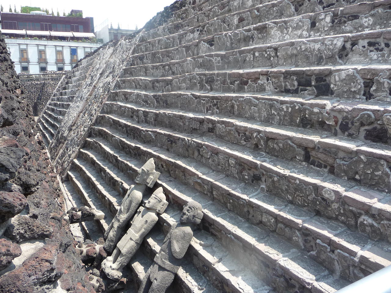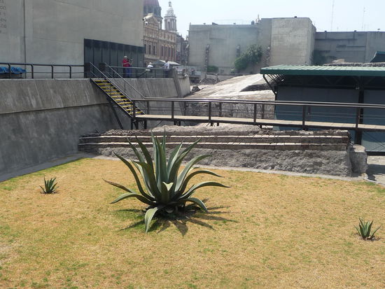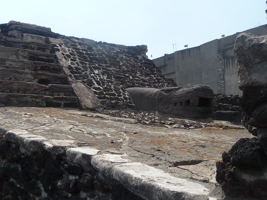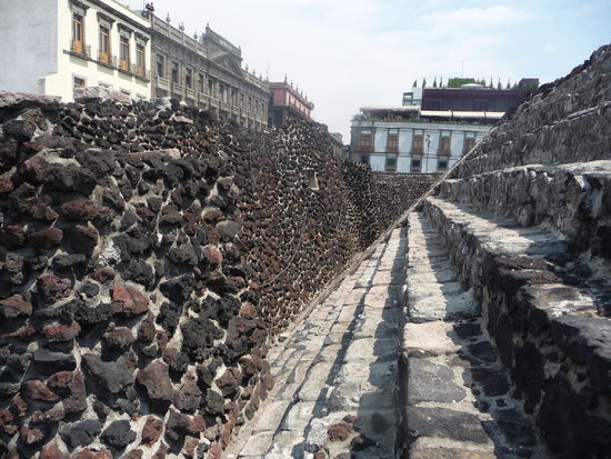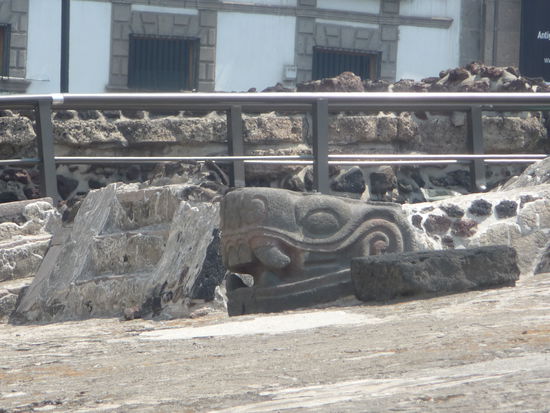 Bei meinen letzten Besuch in Mexiko City 2009 fehlte mir etwas die Zeit so das ich leider nicht alles besuchen konnte was ich eigentlich wollte. Ganz weit oben auf der Liste stand bei mir der Templo Mayor direkt am Zocalo gelegen. Diesmal hatte ich aber genügend Zeit mitgebracht und freute mich auf das Gelände mit der aztekischen Hauptpyramide im ehemaligen Tenochtitlan. Die Stadt wurde mitte des 14. Jh. gegründet und war ca. 200 Jahre die Hauptstadt des Aztekenreiches . Mit geschätzten 100000 Einwohnern war sie damals die größte Stadt in ganz Amerika. Tenochtitlan lag mitten im Texcoco See verteilt über mehrere Inseln was aber heute nicht mehr vorhanden ist da die Spanier nach Ihrer Ankunft den See trocken gelegt haben und auf den Gelände der ehemaligen Azteken Hauptstadt das heutige Zentrum von Mexiko City errichteten. Ironie der Geschichte ist das erst die Spanier Bauwerke der Azteken zerstörten um dort " Ihre Stadt " zu bauen und Ende des 20. Jh. wieder Kolonialbauten der Spanier abgerissen wurden um Reste von Tenochtitlan frei zu legen und deren Geschichte zu erforschen. Viele berühmte Fundstücke von diesem Ort sind heute im Anthropologischen Museum von Mexiko City zu bewundern. Ein weiteres Zeugnis von Tenochtitlan ist das Wappen von Mexiko was einen Adler zeigt der auf einen Kaktus sitzt und eine Schlange im Maul tägt. Seit 1987 gehört der Templo Mayor wie auch der Rest des Zentrums von Mexiko City zum UNESCO WELTKULTURERBE .