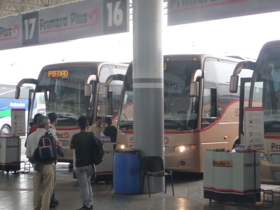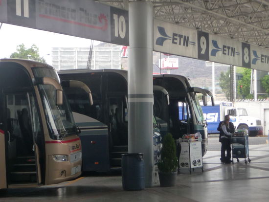 Nach weiteren 2 Tagen fuhr ich am Morgen mit dem Taxi wieder zum Busbahnhof von Morelia um von dort zu meinem nächsten Ziel nach Guanajuato aufzubrechen. Ähnlich wie schon Im Busbahnhof Nord von Mexiko City ( TAN ) , in Puebla , und in einigen Tagen auch in Queretaro ist auch der Zentrale Busbahnhof von Morelia ( TAM ) sehr groß und modern gebaut und funktioniert ähnlich wie ein großer Flughafen. Das Terminal ist in mehrere Module aufgeteilt für die verschieden Bussklassen und Linien wobei das größte und exklusivste für die Luxus Linien der 1. Klasse vorbehalten sind. Dazu gehören u.a. ETN , Elite , Parhikuni oder auch Primera Plus mit denen ich diesmal fahren werde. Für das 1. Klasse Tiket zahlte ich 166 Pesos = 10,40 Euro. Die Umtauschkurse in meinem Reisebericht beziehen sich auf den Zeitraum April 2013. Die Fahrt für die ca. 180 km nach Guanajuato dauerte 3 Stunden.