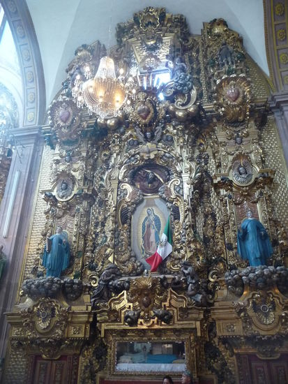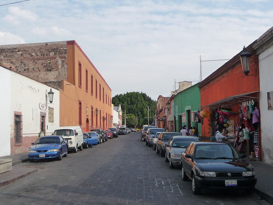 Ich habe San Miguel de Allende verlassen und habe mit Queretaro mein letztes Ziel dieser Mexiko Rundreise erreicht. Die kommenden 2 Tage werde ich hier verweilen bevor es am danach folgenden 3. Tag wieder mit dem Bus zurück nach Mexiko City geht und dort mit der Metro zum Flughafen wo ich meinen Heimflug antreten werde. Queretaro liegt ca. 220 km nördlich von Mexiko City und befindet sich auf 1800 m Höhe. Sie ist Hauptstadt des gleichnamigen Bundesstaates und hat fast 1 Million Einwohner. In Präkolumbischer Zeit wurde das Gebiet des heutigen Queretaro von dem Volk der Otomi besiedelt dessen Nachfahren vereinzelt auch heute noch in der Gegend leben. 1531 erfolgte die eigentliche Stadtgründung durch die Spanier . Strategisch günstig gelegen zwischen Mexiko City und und den wichtigen Bergbauzentren San Luis Potosi , Guanajuato und Zacatecas entwickelte sich die Stadt rasch und wurde bereits 1671 die " dritte Stadt des Königreichs " nach Mexiko City und Puebla was mit erheblichen Vorteilen verbunden war . Neben Dolores Hidalgo und San Miguel de Allende zählt Queretaro als einer der Wiegen des Unabhängigkeitskampfes Anfang des 19. Jh. . Besonders verehrt wird in Queretaro auch Dona Josefa Ortiz de Dominguez die bei den Vorbereitungen der Revolution eine aktive Rolle spielte. Sie war Frau des damaligen Bürgermeisters und in Ihren Haus trafen sich u.a. auch Miguel Hidalgo oder Igancio de Allende. 1847 war Queretaro für einige Jahre provisorische Hauptstadt von Mexiko was sich 1917 noch einmal wiederholte und 1848 unterzeichnete man hier den " Guadalupe - Hidalgo - Vertrag " in dem der Krieg mit den USA beendet wurde und Mexiko große Teile seines Territoriums an den nördlich Nachbarn abtreten mußte. Am 19.06.1867 wurde der Kaiser von Mexiko ( Maximilian und gebürtiger Habsburger ) auf dem Cerro de las Campanas hingerichtet. Seit Anfang des 21. Jh. setzte eine starke wirtschaftliche Entwicklung ein und führte dazu das es in Queretaro heute eines der höchsten Pro - Kopf Einkommen in ganz Mexiko gibt. Viele große und zum Teil auch internationale Firmen aus der Stahl , Chemie , Papier , Lebensmittel , Maschinen und Elektroindustrie siedelten sich hier an. Auf Grund seines historisch gewachsenen kolonialen Stadtzentrums und seiner Geschichte gehört die Stadt Queretaro bereits seit 1996 zum UNESCO WELTKULTURERBE !! Eines der Wahrzeichen der Stadt was man sicher erwähnen muß ist das Äquädukt mit einer Länge von über 1200 m und seinen 75 Bögen was bis 1738 erbaut wurde und zur Wasserversorgung diente. Sehenswert ist es sicher bei Nacht wenn es angestrahlt wird aber ich verzichtete auf einen Besuch da ich die Architektur und Geschichte der großen Aquädukte aus dem alten römischen Reich interessanter finde.