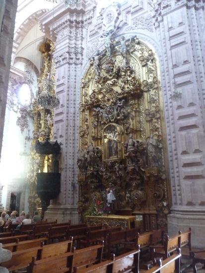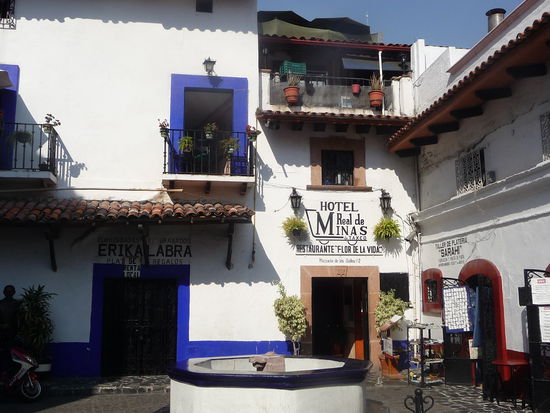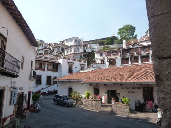 Die nächsten 1,5 Tage inkls. Übernachtung verbringe ich im barocken Silberstädchen Taxco in 1700 m Höhe am Abhang der El Atache Berge das komplett unter Denkmalschutz steht und zu einen der schönsten Kolonialstädte in Mexiko zählt. Niedrige Häuser mit flachen Ziegeldächern , schönen Holztüren und Blumengeschmückten Häusern , Treppen und Winkel , steile und enge mit kopfsteingeflaserte Gassen versetzen einen zurück in vergangene Zeiten als Taxco noch vom Silberabbau lebte und durch dieses reich wurde. Heute lebt die Stadt überwiegend vom Tourismus. Erste Ansiedlungen gab es Anfang des 16. Jh. an diesem Ort in der Nähe einer Silbermine. Die Stadt ist deutlich attraktiver als Cuernavaca und ein Aufenthalt lohnt sich hier auf jeden Fall auch wenn ich den starken Autoverkehr nicht zuletzt auch durch die vielen weißen VW Käfer Taxen als sehr störend empfunden habe. Seit 2002 gehört Taxco zu den " Pueblos Magicos " - Magische Orte. Diese Auszeichnung erhalten besonders sehenswerte Orte in Mexiko die sich durch ein reiches kulturelles und geschichtliches Erbe hervorheben.