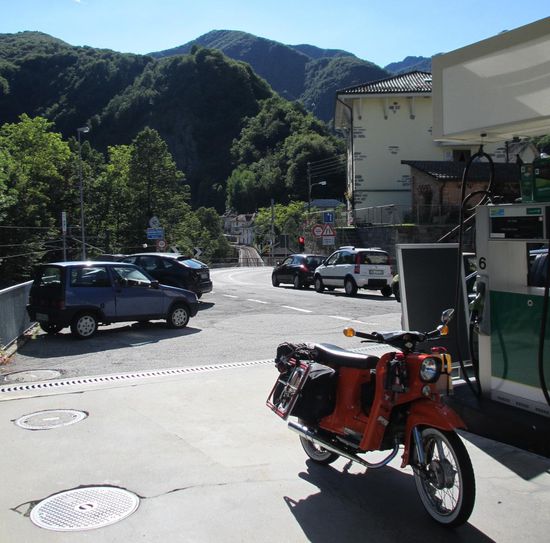 In Camedo gleich hinter der Grenze tankte ich vorsichtshalber, da ich nur noch ca. 50 Km Spritreserven an Bord hatte.