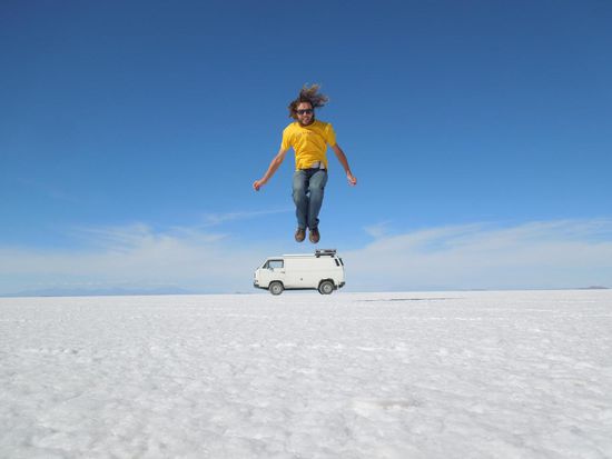 Der Salar de Uyuni, die mit 12000 km2 grösste Salzwüste der Welt, war unser nächstes Ziel. Eine neue asphaltierte Strasse existiert seit 2 Jahren und verbindet Potosí direkt mit der isolierten Gemeinde Uyuni auf 3675m. Nach kurzem Abchecken der Strassenbeschaffenheit fuhren wir am späten Nachmittag los. Gleich zu Beginn sind die sogenannten "Ojos" zu beachten, die man besser umfährt um ein Salzbad zu vermeiden.