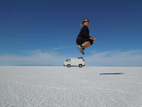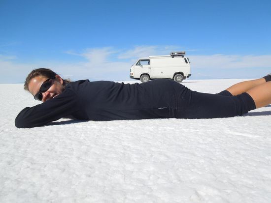 Und dann, nach ein paar Minuten Fahren war alles nur noch WEISS rundherum. Strahlend weiße Salzwaben ... eine einmalige, brettharte, schneeweiß blendende Fahrbahn.