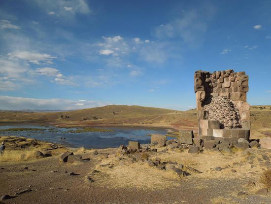 Nachdem wir Puno hinter uns gelassen hatten, stoppten wir bei den Grabtürmen von Sillustani. Bei strahlend blauem Himmel begutachteten wir die Grabbauwerke früherer Zeiten. Alle Türme verfügen über einen nach Osten gerichteten "Eingang" und sind wirklich idyllisch gelegen - schade, dass die "Eingemauerten" diese Aussicht nicht mehr genießen konnten.