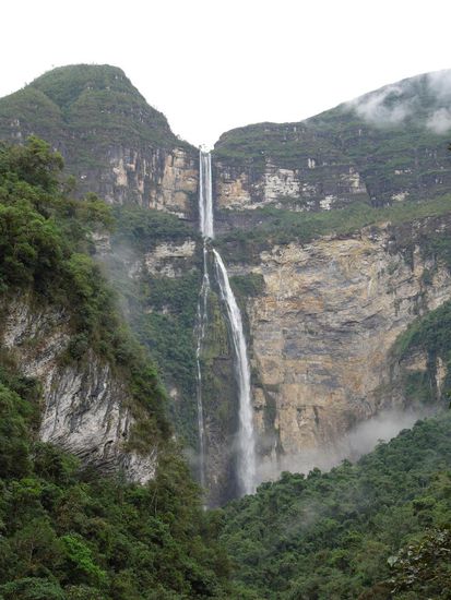 Nach so viel Kultur war es Zeit, sich zu bewegen. Den Gocta-Wasserfall, der sich über zwei Stufen herabstürzt und vom deutschen Forscher Ziemendorff mit 771m vermessen wurde, erreichten wir nach zweistündigem Fußmarsch. "Der frühe Vogel fängt den Wurm" - getreu diesem Motto schafften wir es, zumindest den Hinweg trocken zu erleben.