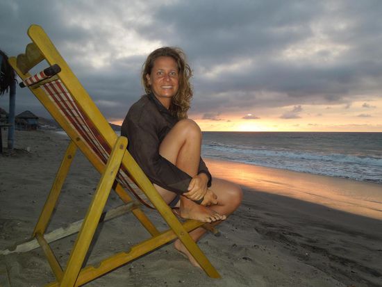 Nach einer Woche seßhaft sein war unsere Wohn-Batterie dem Ende nah und wir gaben wieder Gas. Unser Tagesziel, den Ort Manta, haben wir nicht erreicht. Der Strand von St. Marianita kam uns 14 km vor dem Ziel dazwischen. Hier konnten wir Kitesurf-Anfänger bei ihrem Kampf mit den Elementen beobachten. Wir selbst stürzten uns in die recht hohen Wellen. Den Körper angespannt wie ein Brett ließen wir uns von ihnen bis an den Strand spülen. Vom Liegestuhl aus schauten wir zu wie die Sonne im Meer schlafen ging.