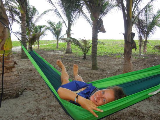 Statt ins Landesinnere fuhr das Bussli mit uns wieder ans Meer. In dem kleinen Stranddorf Canoa fanden wir ein Zuhause für ein paar Tage. Das Bussli stand direkt neben Kokospalmen am Strand. Slacklinen, zwischen den Kokospalmen abhängen, Früchte direkt von vorbei kommenden Händlern kaufen - das Leben kann so einfach sein! Da wir zwei Wassermänner auch hier wieder mächtig Spaß beim brettlosen Wellenreiten hatten, entschlossen wir uns für eine Surfstunde. Wir haben ja bisher unzählige Helden auf diesen Brettern beobachtet ... nun war es Zeit zum Selbstversuch. Nach kurzen Erklärungen und dem theoretischen Bewegungsablauf auf dem Trockenen gings ins Meer. Manuel, unser Surfcrack, schob uns eine Stunde lang brav in die passenden Wellen. Wir zwei kämpften mit dem rutschigen Brett, dem fehlenden Gleichgewicht und strahlten, sobald sich einer von uns auch nur ein paar Sekunden "oben" gehalten hatte. Wir entstiegen dem Pazifik ziemlich geschlaucht und jeweils mit einer kleinen Blessur - das Brett ist nicht so leicht unter Kontrolle zu halten. Fazit: es macht mega Spaß und ist mörderisch anstrengend. Ein Surf-Lern-Kurs ist Pflicht auf unserer nächsten Reise!