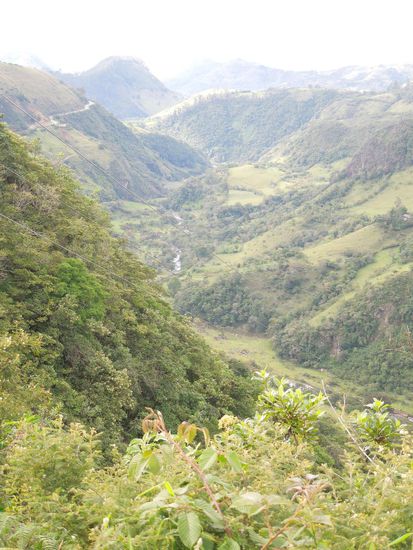 Regentropfen empfangen uns in Kolumbien. Der Grenzübergang geht problemlos, auch das Bussli wird nicht weiter gecheckt, so dass wir ungehindert unseren Vorrat an leckeren Früchten ins Land schmuggeln. Unser erster Weg führt in die Kleinstadt Ipiales - wir brauchen kolumbianische Pesos und eine Autoversicherung. Schnell wird klar, dass das Autofahren hier wieder eher dem peruanischen Stil entspricht: Mopeds wurschteln sich überall durch; überholt wird rechts & links und auch als Fußgänger kann man sich nicht mehr auf GRÜN verlassen. In einer Stunde, noch vor der Mittagssiesta ist alles erledigt, wir verlassen Ipiales und besuchen die Wallfahrtskirche in Las Lajas.