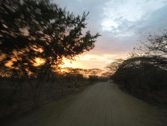 Super, und jetzt? Es war bereits kurz vor Sonnenuntergang … Gustavo entschied spontan, dass wir einfach noch ein Stückchen weiter fahren und dort gäbe es noch eine andere Möglichkeit. Ok, dann mal los. Über eine staubige Holperpiste fuhren wir im Konvoi dem Sonnenuntergang entgegen: ein Pick up, unser Bussli und ein weißer 5er BMW. Nach ca einer halben Stunde stoppten wir direkt am Fluß, es war stockdunkel. Aus dem Nichts tauchten vier Männer auf und nach einem kurzen Gespräch war die Überfahrt für unseren kleinen Konvoi geregelt.