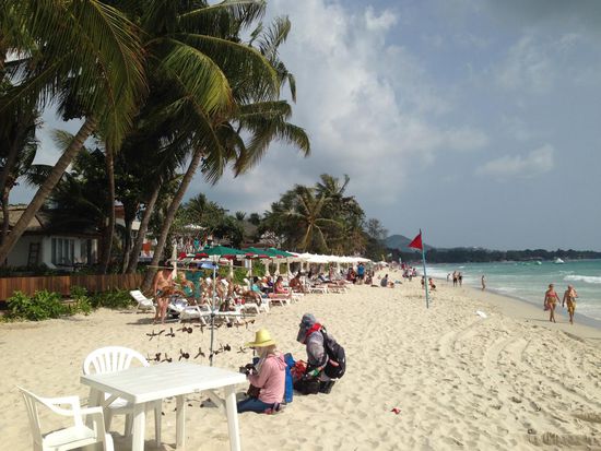 Chaweng's Beach ist eigentlich sehr schön. Weißer Puderzucker-Sand, flaches Meer, nur nicht so viele Palmen wie in Mae Nam, jedoch viel zu voll und alle Verkäufer sind zu aufdringlich.