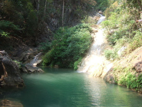 Nach dem Frühstück sind wir dann zum Phalad Wasserfall gefahren. Der befindet sich in einem Namenlosen Ort, 20 km von Kanchanaburi entfernt.