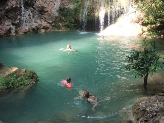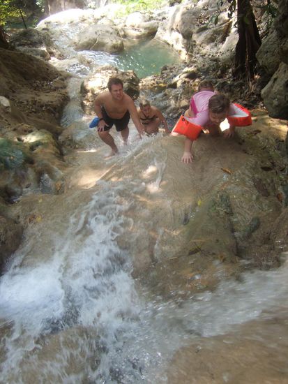 Erst gab es eine kleine Wanderung durch den Dschungel bis zum Wasserfall. Dort ging es dann ab nach oben ca. 1,2 km. Zwischendurch gab es immer wieder kleine Badestops.
