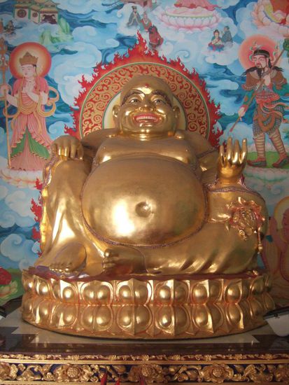 Am Tempel hat Leni von einem Bettelmönch noch ein Actimel geschenkt bekommen. Wahrscheinlich hatte er zu viele Opfergaben am morgen bekommen