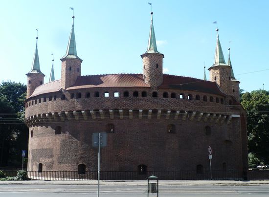 Wir starten unsere Weltkulturerbetour an der Barbakane. Eine Barbakane ist ein dem Tor einer spätmittelalterlichen bzw. renaissancezeitlichen Burg oder Stadtmauer vorgelagertes Verteidigungswerk.