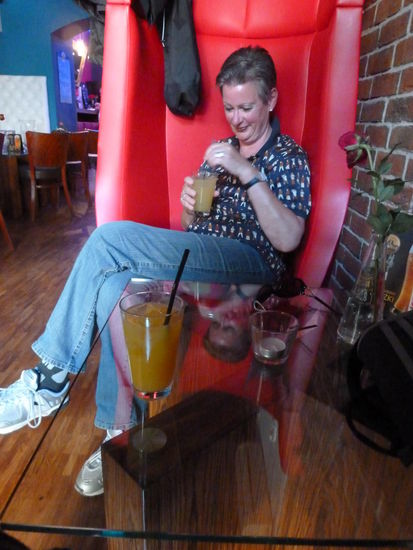 Dort wird auch mit viel Aufwand Werbung betrieben - Stduenten verteilen diverse Zettel mit Empfehlungen, Gutscheinen etc. Auch wir lassen uns mal zu einem Drink im Beerhouse (Wodka mit Fruchtsaft aromatisiert) verführen.