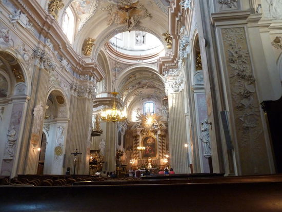 Das Hauptschiff ist mit dem Querschnitt durch ein eindrucksvolles Tonnengewölbe mit einer Kuppel verbunden. IOrgendwo hbe ich gelesen, dass dort laufend geheirtet wird. Und tatsächlich als wir die Kirche besuchen, findet gerade wieder eine Hioxchzeit statt.