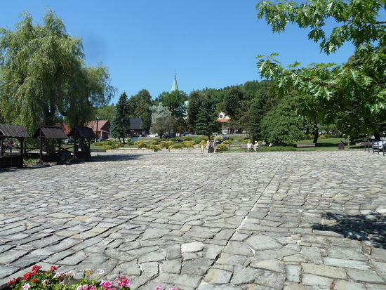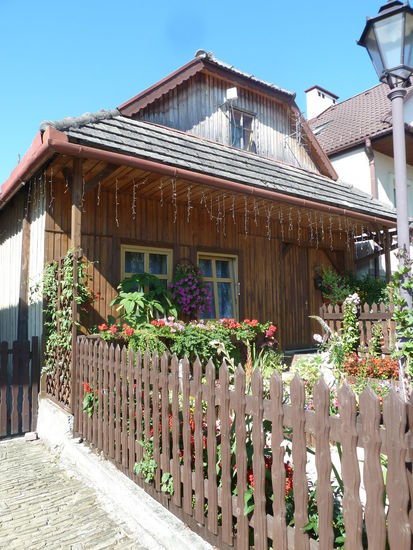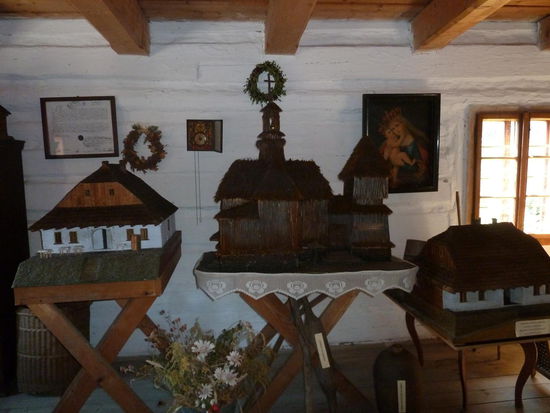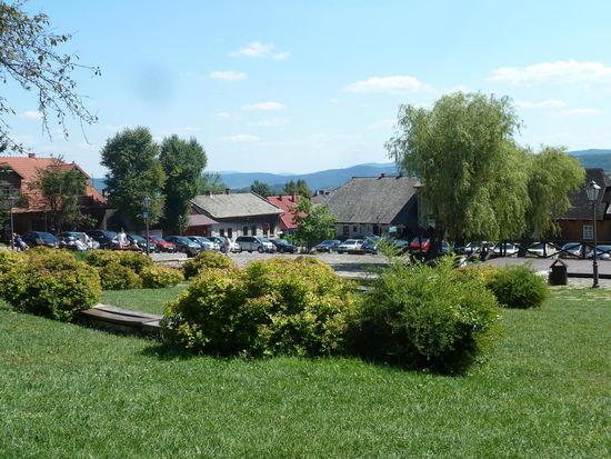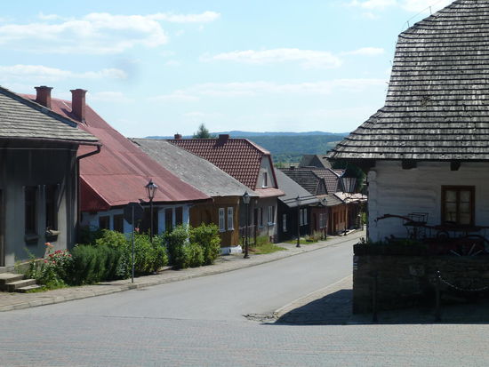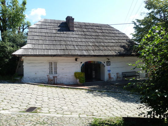 Nach etwa einstündiger Fahrt steigen wir auf dem Rynek - dem historischen Marktplatz - von Lanckorona aus. Direkt an der Bushaltestelle ist das Dorfmuseum (Izba Muzealna), in dem man einen kleinen 'Stadtplan' erhält und sich über die Holzbauweise der Gegend informieren kann.