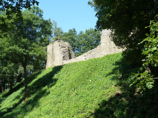 Der Weg ist steil, aber schattig - gut für die Hitze - aber wirklich lohnen tut der Aufstieg nicht, denn Abbildung und Realität klaffen weit auseinander, d.h. die Ruinen geben eigentlich keinen Eindruck einer stolzen Festung wieder.