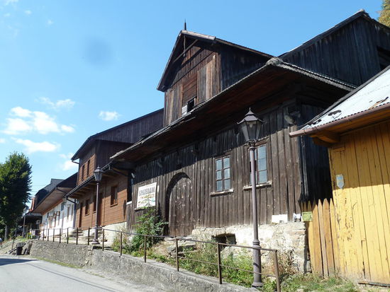 Der interessanteste Teil des Ortes ist allerdings der historische Marktplatz mit seinen einzigartigen Holzhäusern. Die meisten dieser historischen Häuser mit ihren tiefen Bogengängen, breiten Durchfahrtstoren und spezifischen Dächern stammen aus der Zeit des Wiederaufbaus nach dem großen Stadtbrand im Jahre 1869.