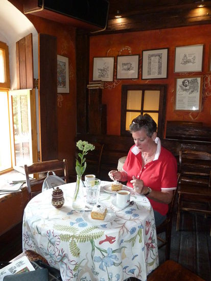 Den Mittagssnack nehmen wir in Form von Kaffee und hausgebackenem Apfelkuchen im Café Pensjonat ein.