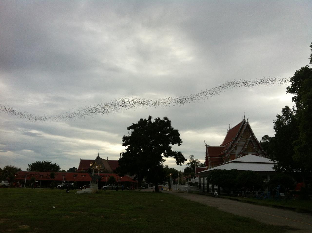 Klaus hat zwar schon erklärt, dass in der Fledermaushöhle überhalb des Wat Khao Chong Phran Millionen von Tiere leben aber dieses Schauspiel in Natura zu erleben ist überwältigend.