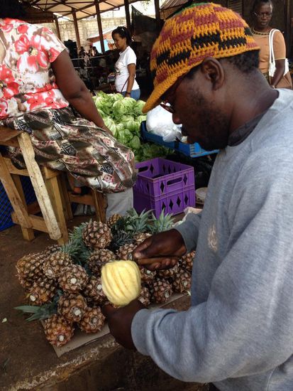 Mandeville ist eine größere Stadt, dort besuchen wir erstmal den Markt und hatten auch wieder ein nettes Erlebnis.