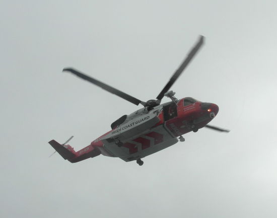 Schließlich ging ich kurz nach unten, um nach meiner Mutter zu sehen. Als ich wieder hoch kam, hatten alle Leute Kameras in der Hand und schauten aufgeregt nach oben - da war ein Hubschrauber der Küstenwache, der über unserer Fähre flog! In der geöffneten Tür stand ein Mann, der uns winkte! Auch ich packte natürlich schnell die Kamera aus. Der Hubschrauber begleitete uns noch ein Stück, bevor er dann höher stieg und wieder Richtung Galway flog. Wow, was für ein toller Moment!