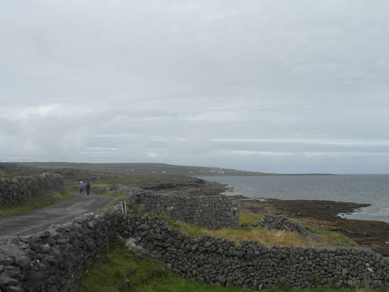 Wir fuhren nun nach Kilronan, den Hauptort der Insel, zurück, wo wir vormittags mit der Fähre angekommen waren. Inzwischen war es später Mittag und wir waren sehr hungrig, also aßen wir erstmal was in einem kleinen Restaurant und besorgten uns noch ein paar Vorräte im örtlichen Supermarkt. Dann waren wir ein wenig ratlos - was konnten wir jetzt noch tun? Wir wollten gerne noch eine kleine Wanderung machen und noch etwas von Inishmór sehen, aber wir waren uns mit der Zeitplanung etwas unsicher und wollten uns auf keinen Fall zu viel vornehmen, schließlich mussten wir wieder die Fähre zurücknehmen...