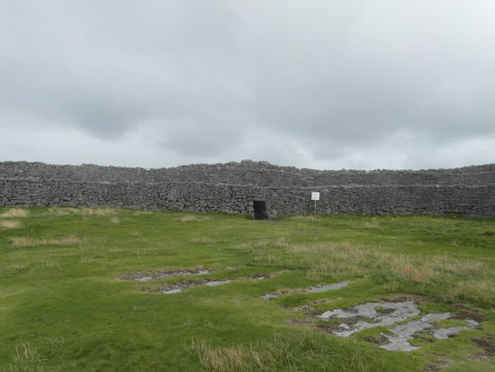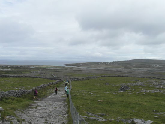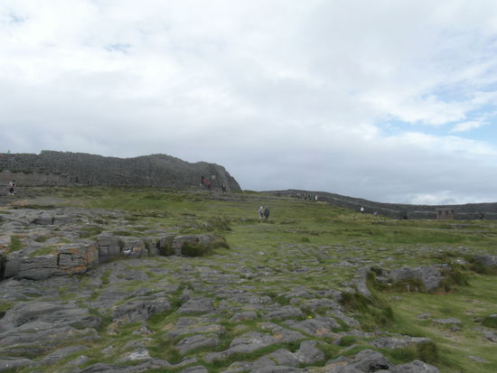Der Hauptstop auf dieser Rundfahrt war Dun Aengus, wo wir zwei Stunden Zeit hatten. Dun Aengus ist ein großes Steinfort, das ca. 1100 v.Chr. gebaut wurde und bis ins frühe Mittelalter in Betrieb war. Es befindet sich an der höchsten Stelle der Insel an der Westküste. Das Fort ist 5,7h groß und in drei Bereiche unterteilt: Den inneren Ring, den mittleren Ring und den äußeren Ring.