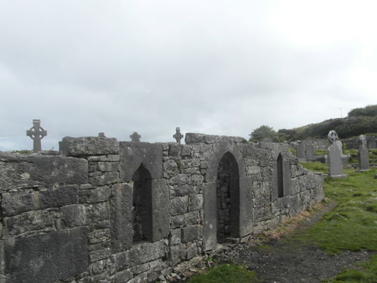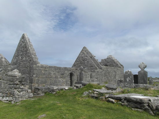 Schließlich holte unser Bulli uns wieder ab und wir fuhren weiter bis an die nördliche Spitze der Insel, nach Na Seacht dTeampall - den Seven Churches. Die meisten Gebäude dieses religiösen Komplexes stammen aus dem 8. Jahrhundert, insgesamt sind es zwei Kirchen und fünf andere Gebäude. Die Anlage wurde ursprünglich im 5. Jahrhundert von St Brecan gegründet.