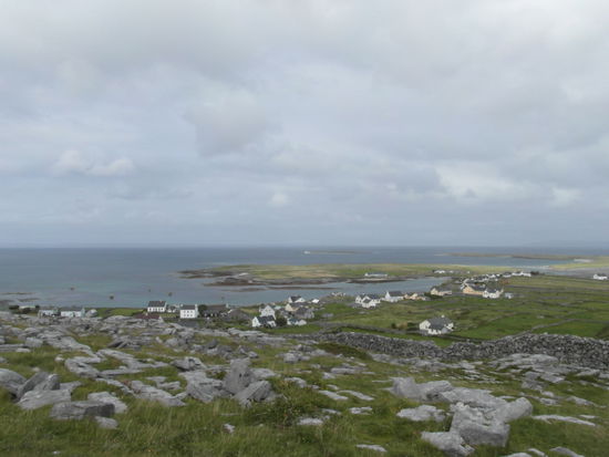 In der Touri Info fanden wir Rat und eine nette Frau schlug uns mehrere Wanderungen vor. Wir entschieden uns, zur Teampall Beannáin zu laufen, einer winzigen frühchristlichen Kirche. Der Weg führte erst immer entlang der Küste und schließlich eine steile Anhöhe hinauf. Wir fanden die Wanderung wirklich toll und bekamen so noch mehr Eindrücke von dieser Insel und ihren Bewohnern. Ich fand es einfach nur beeindruckend, wie bescheiden die Leute hier lebten, und wie sie diesen harschen Bedingungen trotzten.