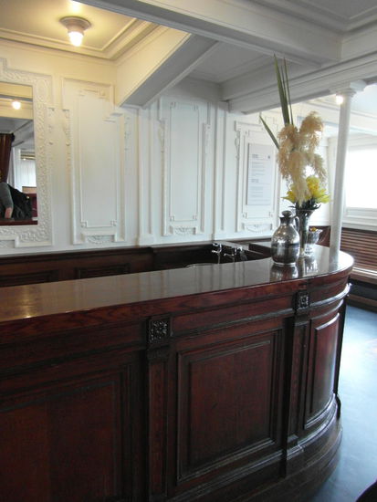 Ich fand es einfach nur wunderschön! Die Nomadic wurde 1911 gebaut, eben zu dem Zweck, ein Tender für die Titanic und ihre Schwesterschiffe zu sein. Sie brachte einige der berühmtesten Passagiere zur Titanic, z.B. Margaret (Molly) Brown und Benjamin Guggenheim. Dann aber brach der Erste Weltkrieg herein und sie wurde für das Militär eingesetzt, so transportierte sie Soldaten und wurde als Wachschiff eingesetzt. Das Gleiche passierte im Zweiten Weltkrieg, und erst danach konnte sie wieder für ihre ursprüngliche Aufgabe genutzt werden, und zwar bis 1968. Was danach passierte, ist echt traurig: Sie wurde von einem reichen Franzosen gekauft, was sie immerhin davor rettete, abgewrackt zu werden, wurde dann aber als Restaurantschiff und Partyboot genutzt. Von ihrem ursprünglichen Aussehen war rein gar nichts mehr übrig. Als ihr Besitzer 2005 starb, blühte ihr wieder das Schicksal des Abwrackens, bis eine Kampagne gestartet wurde. Die lange Restaurierung begann und erst 2013 konnte das Schiff endlich für Besucher eröffnet werden!