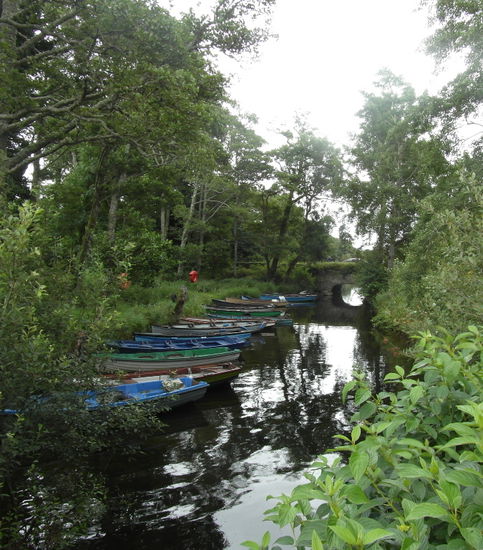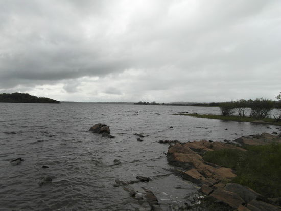 Leider gerieten wir nun in einen Regenschauer! Das Schloss anschauen wollten wir eh nicht, dazu war es schon zu spät und wir waren zu müde, aber der große See (Lough Leane) hätte natürlich im vorherigen Sonnenschein viel schöner ausgesehen... Wir verließen trotzdem den Pfad und liefen ein wenig am Ufer des Sees entlang, dann traten aber ziemlich starke Windböen auf. Wir traten also bald den Rückzug an, und auf dem Rückweg wechselten sich dann kurze Schauer mit Sonnenschein ab. Das konnte unsere Laune aber auch nicht mehr trüben!