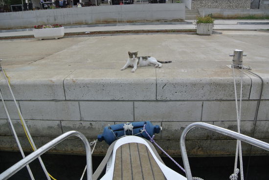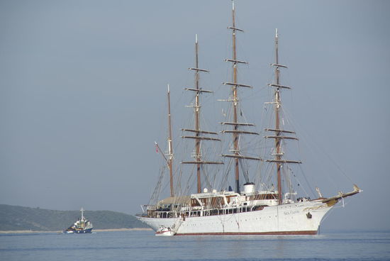 Wie der Kirchturm von Korcula erstmals von Sonnenstrahlen berührt wurde war ich bereits im Boot und Richtung Murter unterwegs. Es gab abermals keine nennenswerten Wellen und die Fahrt ging ganz entspannt zuerst entlang von Hvar und weiter bis Primosten. Nach einer kleinen Sightseeingrunde vom Boot aus war es nur mehr eine Stunde bis Murter. Diese Gegend kenne ich bereits von meinen vorangegangenen Kroatienurlauben. Ein Kaffee am Hafen, und ein Badestopp vor dem "Inselspitz" ließen alte Erinnerungen aufleben. Die Lufttemperatur war angenehm und das Wasser mit 24 Grad erfrischend. Bei unserem ganz in der Nähe befindlichen "Ex-Campingplatz" hab ich auch vorbei geschaut und mit Katharina der Besitzerin ein kurzes Schwätzchen geführt. Danach waren es noch ca 20 Meilen bis Dugi Otok, wo ich im Ort Sali anlegte. Die Infrastruktur ist sehr gut, überall sind Mooringleinen und man muss keinen Anker werfen. Es wird ein Platz zugewiesen und das Personal ist behilflich. Natürlich kostet das auch entsprechend, Bei mir waren es 180 Kuna (ca, 24 Euro), mit Berechtigung zur Benützung der Sanitäranlagen. Insgesamt war ich an diesem Tag knapp 120 Seemeilen unterwegs. Da schmeckte die abendliche Pizza gleich doppelt so gut.
