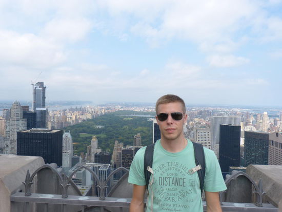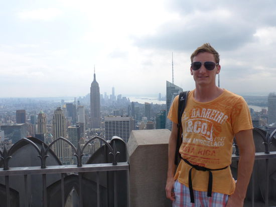 Wir folgen der Straße direkt vor unserem Hotel (der Bowery) nach Norden, wechseln nach wenigen Kilometern auf den Broadway und laufen die 5th Avenue bis zum Empire State Building hinauf. Von Nahem sieht das ESB um ehrlich zu sein, ziemlich trist aus. Sicherlich ist es sehr beeindruckend, an der endlosen Fassade hinauf gen Himmel zu blicken, aber wie gesagt von unten ziemlich Trist. Doch unser Ziel ist ohnehin das "top of the rock". Eine Aussichtsplattform auf dem Rockefeller Center. Nicht ganz so hoch, aber angeblich kürzere Wartezeiten und bei Weitem nicht so überfüllt. Ob es stimmt, wissen wir nicht. Zwei weitere, unbestreitbare Vorteile des Rockefeller Centers sind der ungetrübte Blick auf das ESB und den Central Park.