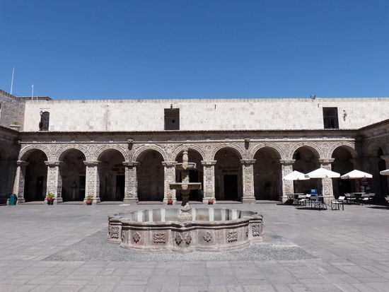 Mit vollem Gepäck geht es nach einem ausführlichen Blick auf den Arequipastadtplan bei Google Maps zu unserem Hostel in der Innenstadt, dem Albergue Espanol in der Peral 117. Um die 15€ kostet hier das Doppelzimmer mit eigenem Bad pro Nacht. Im Vergleich zu Chile ein unfassbares Schnäppchen, für Arequipa nur mäßig günstig, aber trotzdem empfehlenswert.