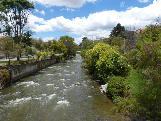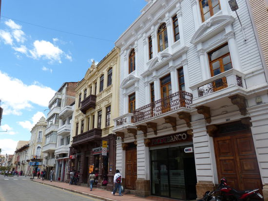 Danach geht es durch die wunderschöne Altstadt von Cuenca, eine unerwartet reich wirkende Stadt, die fast schon mit europäischen Maßstäben mithalten kann. Die unzähligen Kolonialbauten mit ihren bunten Fassaden voller Verschnörkelungen und Verzierungen und den vielen netten Balkonen und Terrassen sind ein wahrer Augenschmaus. Auch das Wetter ist mit Temperaturen von knapp über zwanzig Grad und überwiegend Sonnenschein heute auf unserer Seite und genau richtig für einen kleinen Stadtbummel. Bis runter zum Fluss treibt es uns durch die netten Sträßchen, wo wir ein paar Minuten am Ufer entlangschlendern. Auf dem Weg zurück ins historische Zentrum verschlägt es uns dann in ein kleines Burgerrestaurant, bevor wir auf den Plaza Abdon Calderon mit der Kathedrale von Cuenca stoßen. Wie in Arequipa ist auch dieser Platz leider zu zugewachsen, um schöne Gesamtfotos machen zu können. Vor allem der wunderschöne Anblick der Vorderseite der Kathedrale ist leider kaum mit der Kamera festzuhalten. Dafür tröstet die ungeheure Vielzahl anderer schöner Kirchen ganz in der Nähre ein wenig darüber hinweg.