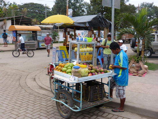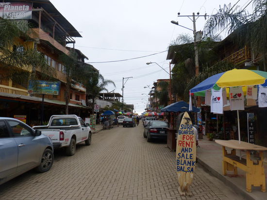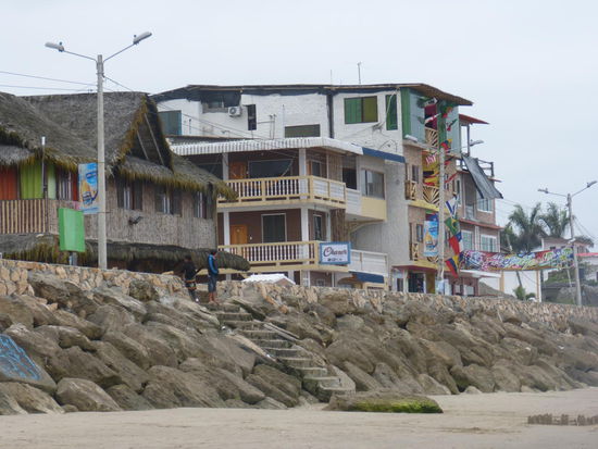 Gute zwei Stunden dauert die Busfahrt. Das Wetter wird immer schlechter und als wir in La Libertad aussteigen, fällt feinster Sprühregen auf uns nieder. Der Ort ist auf den ersten Blick auch nicht gerade einladend, vielleicht sind wir aber auch nur im falschen Viertel. Auf jeden Fall beschließen wir, doch gleich nach Montanita weiterzufahren, ein für seinen schönen Strand bekannter und vor allem bei Surfern beliebter Ort, in dem wir die nächsten Tage unseren ersten Strandurlaub genießen wollen. Es gibt ein schnelles Mittagsmenü und dann erreichen wir zu Fuß auch schon unseren Busbahnhof (jeder Zielort scheint hier seine eigene Abfahrts- bzw. Ankunftsstelle zu haben).