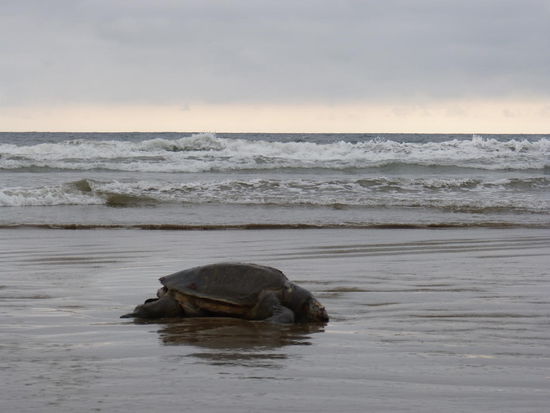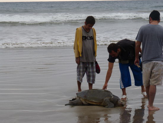 Schon irgendwie traurig, diese riesigen, alten Schildkröten so tot herumliegen zu sehen, wie sie immer wieder von den auslaufenden Wellen angestubst und ein Stück weiter an Land getragen werden.