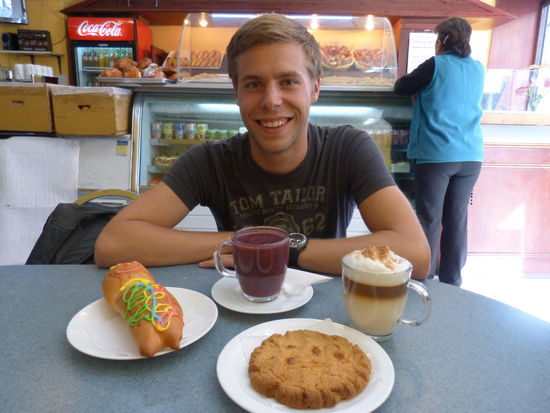 Also wird erstmal friedlich weitergeschlafen, bevor wir dann beim Bäcker nebenan Brötchen für die lange Busfahrt kaufen. Der Verkäufer will zuerst nicht recht glauben, dass wir wirklich 22 Stück wollen, aber nach mehrfacher Bestätigung wird unser Wunsch schließlich erfüllt und wir bekommen einen riesigen Beutel frischer Brötchen überreicht.